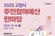 한국시사경제 윤광희 기자 | 고양특례시는 오는 10월 14일 오후 3시 30분, 일산호수공원 고양꽃전시관(북카페)에서 ‘2025년 고양특례시 주민참여예산 한마당’을 개최한다고 밝혔다. 주민참여예산제는 예산 과정에 시민이 직접 참여함으로써 지역의 주인 의식을 높이고 재정민주주의를 실현하는 중요한 제도다. 시는 지난해 7월부터 올해 6월 말까지 온오프라인을 통해 총 250건의 주민 제안사업을 접수받았다. 이후 소관 부서의 검토와 주민참여예산위원회의 심사를 거쳐 온라인 시민투표를 실시하고 그 결과를 이번 행사에서 공개할 예정이다. 현재 고양시청 누리집(홈페이지)에서는 2026년도 주민참여예산 제안사업에 대한 사전 온라인 시민투표(9.26.~10.8.)가 진행 중이다. 이번 행사에서는 2025년도 주민참여예산으로 반영돼 실제로 실행된 사업 중 우수 실행사례도 함께 소개된다. 주민참여예산의 의미를 시민들과 다시 공유하고, 향후 제도의 발전 방향을 함께 모색하는 자리가 될 예정이다. 행사에서 결정된 제안사업 우선순위는 오는 10월 중 ‘주민참여예산 조정협의회’심의를 거쳐 2026년도 고양시 예산안