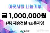 한국시사경제 윤광희 기자 | 고성군은 제승건설(주)가 9월 17일 고성군청 주민생활과를 통해 민족 최대의 명절인 추석을 앞두고 어려운 이웃을 위해 써달라며 성금 100만 원을 전달했다고 밝혔다. 윤지영 대표는 “작은 정성이지만 우리 주변의 어려운 이웃들이 따뜻하고 훈훈한 추석 명절을 보내는 데 도움이 됐으면 좋겠다”라며, “앞으로도 지속적인 기부와 관심을 통해 나눔에 앞장서겠다”라고 전했다. 정영랑 주민생활과장은 “지역사회의 어려운 이웃을 위해 따뜻한 손길을 내밀어 주신 제승건설(주)과 윤지영 대표님께 감사드린다”라며, “소중한 성금은 꼭 필요한 곳에 잘 전달하여 모두가 따뜻한 명절을 보내도록 최선을 다하겠다”라고 전했다. 기탁된 성금은 경남사회복지공동모금회를 통해 관내 어려운 이웃들을 위해 소중히 사용될 예정이다.