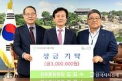 한국시사경제 윤광희 기자 | 진주문화원 김길수 원장은 지난 9월 30일 기업인의 방에서 지역사회 어려운 이웃돕기 성금 300만 원을 진주시복지재단에 기탁했다. 이번 성금은 최근 수해로 피해를 입은 주민들과 경제적 어려움을 겪고 있는 이웃을 돕기 위해 문화원장 취임식을 생략하고, 그 비용을 나눔으로 대신해 마련된 것이다. 김길수 원장은 “지역사회의 어려움을 함께 나누는 것이 당연한 책무라 생각한다” 며 “앞으로도 진주문화원이 지역민과 함께하는 열린 문화 공간으로 자리매김할 수 있도록 최선을 다하겠다”고 전했다. 조규일 시장은 “지역사회 어려운 이웃을 위한 김길수 원장님의 나눔 실천에 감사드린다”며 “기탁해 주신 성금은 도움이 필요한 이웃을 위해 소중히 사용하겠다”고 말했다. 한편, 진주시복지재단은 복지사각지대 해소와 시민들의 삶의 질 향상을 위해 다양한 복지사업을 추진하며, 지역사회 복지 향상과 나눔 문화 확산을 위해 지속적인 노력을 기울이고 있다.