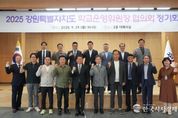 한국시사경제 이정이 기자 | 강원특별자치도교육청은 9월 29일 오전 10시 강원특별자치도교육청 대회의실에서 ‘2025년 강원특별자치도 학교운영위원장 협의회(정기회)’를 개최했다. 이날 협의회에는 시·군 학교운영위원장 협의회장과 강원특별자치도교육청 담당자 등 20여 명이 참석했으며, 신임 회장을 비롯한 임원 3명을 선출한 후 각종 교육 현안에 대한 심도 있는 협의가 이루어졌다. 2025년도 협의회 회장에는 김흥진 속초지역협의회장, 부회장에는 △탁원빈 춘천지역협의회장 △우민구 양구지역협의회장이 선출됐다. 한편, 협의회에서는 △학교운영위원장 연수 개최안 △학교운영위원장 협의회 운영안 △그밖에 교육 현안의 추진 상황 및 문제점에 대해 논의하고, 해결 방안을 모색했다. 신경호 교육감은 “학교운영위원장 협의회가 지역 교육의 중심에서 활발히 소통하며 내일이 더 기대되는 강원교육을 만들어 나갈 수 있기를 기대한다”라며, “앞으로도 강원특별자치도 학교운영위원장 협의회의 적극적인 지원과 관심을 부탁한다”라고 말했다.