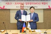 한국시사경제 이정이 기자 | 서울 서초구는 지난 26일 구청 5층 대회의실에서 체코 프라하 6구와 문화, 예술, 교육 분야 등 상호 교류 우호증진을 위한 우호도시협정 양해각서(MOU)를 체결했다고 밝혔다. 프라하 6구는 체코 프라하에서 가장 넓은 행정구역으로, 바츨라프 하벨 국제공항과 체코 공과대학교, 각국 대사관과 주체코 한국대사관이 위치하고 있다. 또 한인 교민이 가장 많이 거주하는 지역으로 서울시 25개 자치구 중 가장 안전하고 살기 좋은 도시로 알려진 서초구와 많은 공통점을 지닌 도시다. 이번 협약을 위해 지난 6월 말 전성수 구청장을 비롯한 대표단은 체코 프라하 6구를 방문해 야쿱 스타렉 구청장과 간담회를 갖고 문화·교육 등 다양한 분야에서 지속 가능한 협력 방안을 폭넓게 논의한 바 있다. 구는 이번 협약을 계기로 프라하 6구와의 교류를 본격적으로 확대해 한·체코 간 미래지향적 파트너십 구축에 기여해 나간다는 계획이다. 또 이번 방문 기간 중 프라하 6구 대표단은 9월 27일부터 28일까지 열리는 서초구 대표축제인 ‘서리풀뮤직페스티벌’에 참여한다. 아울러 양재천에 설치된 ‘바츨라프 하벨 벤