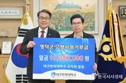 한국시사경제 이정이 기자 | 대구한의대학교 변창훈 총장과 교직원들이 영덕군의 발전에 힘을 보태기 위해 지난 10일 고향사랑기부금 1,035만 원을 전달했다. 변창훈 총장은 “지역사회에 조금이나마 도움이 되기를 바라는 뜻에서 교직원들이 자발적으로 나서주었다”며, “지역 발전을 위해 추진하는 영덕군의 다양한 노력에 함께하고 응원하는 마음으로 계속 힘을 보태겠다”라고 전했다. 영덕군은 전달받은 기부금을 군민의 삶의 질 향상과 미래세대 지원을 위해 사용할 계획이다.