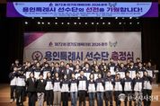 한국시사경제 이정이 기자 | 용인특례시는 30일 시청 에이스홀에서 ‘제72회 경기도체육대회 2026 광주’에 참가하는 선수단 출정식을 개최했다. 제72회 경기도체육대회는 4월 16일부터 18일까지 3일간 광주시 일원에서 열리며, 용인특례시는 육상, 축구, 태권도 등 26개 종목에 선수 312명이 출전한다. 출정식에는 이상일 시장을 비롯해 체육회 임원과 종목단체장, 선수단 등 약 300명이 참석했다. 이상일 시장은 격려사를 통해 “그동안 대회를 위해 열심히 준비해 온 선수단 여러분들 정말 자랑스럽다”며 “이번 대회에서 갈고닦은 실력을 마음껏 발휘해 원하는 성과 거두시길 바라고, 모두가 한 단계 더 성장하는 계기가 되길 바란다”고 말했다. 이 시장은 “선수들이 더 좋은 환경에서 훈련하고 기량을 펼칠 수 있도록 지원을 확대하기 위해 노력하고 있다”며 “앞으로도 여러분과 함께 힘과 지혜를 모아 오늘보다 더 나은 내일을 만들어가겠다”고 했다. 이 시장은 출정식 이후 집무실에서 직장운동경기부 감독과 종목단체 회장단을 대상으로 간담회를 열어 선수단을 격려하고, 현장의 애로사항과 건의사항을 청취했다.