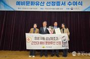 한국시사경제 이정이 기자 | 의성군은 의성자동성냥제조기(의성성냥공장 윤전기)가 지난 12월 1일 국립고궁박물관에서 열린 ‘예비문화유산 선정증서 수여식’에서 경상북도에서는 유일하게 예비문화유산 선정증서를 받았다고 밝혔다. 이날 행사에는 의성군 관광복지국장을 비롯한 관계자 5명이 참석해 국가유산청장 및 주요 외빈과 환담을 나누고 선정증서 수여식과 예비문화유산 사진전 관람 등 공식 일정에 함께했다. 특히 이어진 학술대회에서 의성군은 자동 성냥 제조기의 역사적·기술적 가치와 향후 보존 방향을 주제로 발표를 진행해 타 지자체 및 관련 기관 관계자들로부터 큰 관심과 호응을 얻으며 의성성냥공장 재생 사업을 널리 알리는 계기가 됐다. 참석자들은 이번 수여식을 통해 각 예비문화유산의 가치와 보존 방향을 공유하고, 앞으로의 연구·활용 방안을 논의했으며 미래 세대에게 전승해야 할 문화자원으로서 보존과 계승을 위해 상호 협력을 다짐했다. 김주수 의성군수는 “이번 예비문화유산 선정은 윤전기가 단순한 산업기계를 넘어 미래 문화유산으로서 잠재적 가치를 공식적으로 인정받은 뜻깊은 성과”라며 “체계적 보존과 활용을 통해 의성의