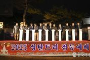 한국시사경제 이정이 기자 | 문경시는 지난 25일 성탄을 맞이하여 성탄 트리를 설치하고 문경시기독교연합회(회장 문은석) 주관으로 모전공원 광장에서 관내 기독교 신도 및 시민 등 200여 명이 참석한 가운데 ‘2025년 시민화합 성탄트리 점등식’을 했다. 이날 점등식은 축하공연, 찬양과 성경 봉독, 기도, 내빈 소개 및 축사, 불우이웃돕기 성금 전달식 순으로 진행됐으며, 이번에 설치된 성탄트리는 시민화합을 기원하고 따뜻한 연말연시 분위기를 위해 설치됐으며 내년 1월까지 점등될 예정이다. 특히 문경시기독교 연합회는 연말연시에 불우한 이웃을 위해 써달라며 이웃돕기 성금 200만 원을 전달하여 훈훈함을 더했다. 문은석 회장은 “이번 트리 점등이 성탄의 기쁨을 시민들과 함께 나누고 희망의 메시지가 돼 시민들에게 밝은 빛을 줄 수 있기를 바라며 주님의 사랑과 은혜가 가득한 성탄이 되기를 기원한다.”고 전했다. 신현국 문경시장은 “성탄트리의 빛을 통해 예수님이 전하고자 한 사랑과 따뜻한 마음을 시민들과 함께 나누고 시민 모두 화합과 연대를 이룰 수 있기를 희망한다. 특히 주변의 소외된 이웃들에게 따뜻한 관심과