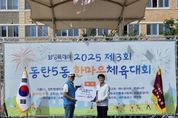 한국시사경제 이정이 기자 | 지난 21일 ‘제3회 동탄5동 한마음 체육대회’가 동탄5동 체육진흥회 주관으로 다원이음터 축구장에서 성황리에 개최됐다. 이번 대회는 주민들의 화합과 소통을 통해 건강을 증진하고 공동체 의식을 다지기 위해 마련됐으며, 400여 명의 주민과 내빈들이 함께해 활기찬 분위기를 더했다. 행사는 풍물 공연과 색소폰 연주로 흥겨운 막을 올렸고, 개회식에서는 모범시민 표창 수여와 내빈들의 축사가 이어졌다. 또한, 동탄5동 체육진흥회와 감탄정형외과가 의료 지원·후원 협약을 체결해 향후 체육대회를 비롯한 다양한 동 행사에서 의료 지원과 후원을 지속하기로 약속하며 지역사회 상생의 의미를 더했다. 본 경기는 볼풀공 서바이벌, 큰 공 배구, 줄다리기 등 남녀노소가 모두 참여할 수 있는 명랑운동회 종목으로 진행돼 웃음과 열기가 가득했다. 이어진 태권도 축하공연은 참가자들에게 힘찬 에너지를 전하며 분위기를 한층 끌어올렸다. 또한 체험부스 운영과 경품 추첨 이벤트도 마련돼 가족 단위 참가자들에게 다채로운 즐길 거리를 제공했다. 풍성한 상품과 이벤트는 주민들의 큰 호응을 얻으며 축제의 열