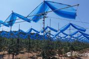 한국시사경제 이정이 기자 | 의성군이 특허 출원한 커튼형 햇빛차단망 시설이 전국 농가에 본격 보급된다. 햇빛차단망은 여름철 과수 상부에 청색 망을 설치해 과일의 햇볕데임(일소) 피해를 줄이는 기술이다. 2019년 의성군 제안으로 농촌진흥청 국비사업에 채택돼 전국 시범사업으로 활용되며 효과가 입증됐으나, 높은 설치비로 인해 보급 확대에는 한계가 있었다. 이에 의성군은 농가 부담을 줄이기 위해 커튼형 구조를 새롭게 고안했으며, 2024년 현장실증 결과 기존 대비 약 30% 설치비 절감과 사후관리 편리성을 확보한 모델을 개발해 실용신안특허(제20-049971호)를 취득했다. 커튼형 햇빛차단망은 기존 기술의 효과인 ▲일소피해 감소(5%↓), ▲상품과 비율 향상(11.6%↑), ▲수확량 증가(10.4%↑), ▲착색도 개선(20%↑)을 유지하면서도 설치비를 줄일 수 있어 농가 확대 보급에 유리할 것으로 기대된다. 군은 이번 ‘비용절감 커튼형 햇빛차단망 시설’의 확대 보급을 위해 기술이전 통상실시 계약을 체결할 계획이며, 향후 5년간 단계적으로 전국 농가 보급될 전망이다. 김주수 의성군수는 “연일