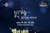 한국시사경제 전남취재본부 | 전라남도 나주시가 깊어지는 가을밤, 시민과 관광객에게 환상적인 빛의 향연을 선사한다. 나주시는 오는 11월 21일부터 23일까지 3일간 빛가람 호수공원 일원에서 ‘별이 내린 빛의 정원’을 주제로 ‘2025 빛가람 빛정원 페스타’를 개최해 시민과 함께하는 늦가을 야간축제의 낭만을 밝힌다. 나주시는 이번 축제가 빛과 자연, 예술이 어우러진 도심형 야간정원 축제로 환상적인 조명 연출과 미디어아트를 통해 관람객이 마치 동화 속에 들어온 듯한 ‘빛의 정원’을 체험할 수 있도록 준비하고 있다고 10일 밝혔다. 개막식은 11월 21일 저녁 6시 식전 공연을 시작으로 7시 개막선언과 미디어퍼포먼스 크루의 개막 공연, 점등 퍼포먼스, 빛정원 라운딩 순으로 진행된다. 빛과 음악, 미디어아트가 어우러지는 개막 무대를 통해 축제의 서막을 화려하게 장식할 예정이다. 이번 페스타의 하이라이트인 빛 조형물 전시 구간은 빛가람호수공원 야외무대 뒤 여울다리 입구에서 베매산 산책길까지 이어진다. 다채로운 빛 조형물과 미디어아트 장식이 조성돼 밤하늘 아래 반짝이는 ‘빛의 터널’과