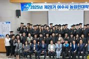 한국시사경제 전남취재본부 | 여수시는 지난 24일 농업기술센터 농업인교육관에서 ‘2025년 농업인대학 졸업식’을 열고 60명의 졸업생을 배출했다고 밝혔다. 이날 졸업식에는 여수시 농업인대학장인 정기명 시장을 비롯해 백인숙 시의회 의장, 시의원, 농업 유관기관장, 농업인단체장 등 80여 명이 참석해 졸업생들을 축하했다. ‘여수시 농업인대학’은 2006년 설립 이래 지역 농업의 변화와 트렌드에 맞춘 교육과정을 운영하며 농업 인재를 육성해 왔다. 지난 20년간 총 39개 교육과정을 운영했으며 올해 졸업생 60명을 포함해 지금까지 1,282명이 졸업의 영예를 안았다. 올해 졸업생은 농업경영마케팅반 30명, 원예작물반 30명으로 구성됐으며, 졸업식에서는 농업인대학 발전에 기여한 공로자와 성적 우수자, 개근자 등에게 상장이 수여됐다. 또한 교육과정을 돌아보는 활동 영상 상영 등으로 의미를 더했다. 정기명 시장은 “어려운 여건 속에서도 배움에 대한 열정으로 학업을 무사히 마친 졸업생들이 존경스럽다”며 “농업인대학에서 배우고 익힌 지식을 잘 활용해 여수 농업의 경쟁력을 한층 높여 달라”고