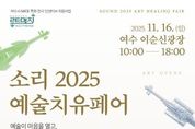 한국시사경제 전남취재본부 | 여수시는 오는 11월 16일 이순신광장에서 ‘소리 2025 예술치유페어’를 개최한다. 이번 행사는 ‘소리를 느끼고, 마음을 치유하다’를 주제로 음악·악기·미술 등 다양한 감각 기반 콘텐츠를 시민이 직접 체험하며 예술적 치유를 경험할 수 있도록 마련됐다. 단순 전시 중심의 행사에서 벗어나 공연·체험·전시를 결합해 도심의 문화적 활력과 시민 정서 회복에 기여할 수 있도록 기획됐다. 특히 지역 예술기업, 공예·악기팀 등 다양한 업체가 참여해 지역 기반의 예술 치유 네트워크를 형성하고 마이스 특화전시 사업의 취지인 지역 산업 및 예술기업과의 연계를 강화하는 계기가 될 전망이다. 행사장 내 ‘소리놀이터’에는 무대와 포토존이 운영되며 시간대별 프로그램이 진행된다. 오전 오프닝 체험을 시작으로 국악과 힐링 악기가 함께하는 특별 무대가 펼쳐지며 시민이 직접 악기를 시연해보는 관객 참여형 콘텐츠도 마련된다. 김상욱 여수시 관광과장은 “이번 ‘소리 2025 예술치유페어’는 시민의 심리적 안정과 문화 향유 기회 확대는 물론 여수 마이스 특화전시사업의 방향인 지역 예술 콘텐츠 육