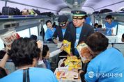 한국시사경제 전남취재본부 | 장흥군은 24일 운행된‘정남진 장흥 통일열차’에서 추억의 기차 콘셉트의 프로그램을 운영해 참가자들에게 특별한 추억을 선사했다고 밝혔다. 이번 프로그램은 철원 평화안보 현장을 견학하기 위한 통일열차 속, 기차 안에서 함께 소통하고 즐기는 특별한 시간을 위해 마련됐다. 열차 내에서는 과거 무궁화호의 카트 서비스를 재현한 간식 판매 이벤트가 진행됐다. 김성 장흥군수와 김재승 군의장이 옛날 역무원 복장을 하고 객차 사이를 오가며 탄산음료, 오징어, 땅콩 등 추억의 간식을 직접 판매해 참가자들의 호응을 받았다. 또한 객차 내 방송 시스템을 활용해 역무원 안내 방송을 패러디한 재치 있는 멘트를 선보이며 열차 분위기를 한층 더 밝게 만들었다. “잠시 후 등장하는 간식 카트는 여러분의 추억과 함께 달리고 있습니다. 통일로 향하는 열차에 탑승하신 것을 환영합니다” 등 유쾌한 멘트가 흘러나올 때마다 객차마다 웃음과 박수가 터져 나왔다. 한 참가자는 “철원으로 가는 길이 정말 즐거웠다. 진짜 옛날 기차를 타고 있는 기분이었다”며 소감을 전했다. 특히 이