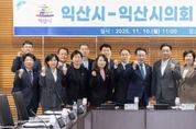 한국시사경제 전북취재본부 | 익산시와 익산시의회가 지역 발전을 위한 협력 체계를 더욱 굳건히 다진다. 익산시는 10일 익산시의회 의장단과 간담회를 열고, 2026년 본예산 반영이 필요한 주요 사업과 현안과제 등을 논의했다. 이번 간담회는 한 해를 마무리하고 다가오는 2026년을 준비하기 위한 자리로, 익산시와 시의회의 협력 관계를 강화하고 현안 해결을 위한 소통의 장으로 마련됐다. 이날 회의에서는 △익산 산업단지 조성사업 △중소기업은행 부지 매입 △익산시 발달장애인 평생교육센터 건립 △다이로운 모아복합센터 건립 등 7건의 주요 사업이 심도 있게 논의됐다. 김경진 의장은 "시의 발전을 위한 좋은 정책과 사업에 있어 시의회와 익산시가 허심탄회하게 소통하고 협력해 현안을 해결할 수 있는 방안을 모색하겠다"고 말했다. 정헌율 시장은 "익산시와 시의회가 함께하는 협력이 지역 발전의 동력이 된다"며 "앞으로도 의회와의 지속적인 소통으로 시민이 공감하는 시정을 펼치겠다"고 강조했다. 한편, 익산시는 올해 시의회와 총 3번의 간담회를 가졌으며, 앞으로도 시의회와의 활발한 소통으로 '위대한