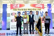 한국시사경제 전북취재본부 | 장수군은 지난 23일 장수종합경기장에서 개최된 의암주논개 탄신 제451주년 기념 제58회 장수군민의 날 기념식·제57회 장수군민 체육대회를 성공리에 마무리했다. 장수군민의 날 기념식과 장수군민 체육대회는 우리 군의 대표적인 역사 인물인 의암 주논개의 정신을 되새기기 위해 주논개 탄신일인 음력 9월 3일에 맞춰 해마다 개최된다. 이날 행사는 최훈식 군수를 비롯해 최한주 장수군의회 의장과 의원, 관내 기관·사회단체장, 지역주민, 선수단 등 1,000여 명이 참석하여 그 의미를 더했다. 기념식은 식전공연을 시작으로 △선수단 입장식 △국민의례 △군민헌장 낭독 △시상(군정발전유공자 표창, 장수군 명예군민증 수여, 장수군민의 장) △기념사 및 축사 △논개상 추대자 소개 순으로 진행됐다. 수상자는 지역의 명예를 드높이고 지역 발전에 앞장서 온 정연길(이티바이오텍 대표), 이수민(NH농협 장수군출장소장) 씨에 대한 군정발전유공 시상이 이뤄졌으며 김준오 NH농협 전 장수군지부장은 장수군 명예군민증을 수여 받았다. 또한 제43회 장수군민의 장 수상자인 문화체육장 오재영(남·7