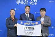한국시사경제 전북취재본부 | 지역 인재육성의 산실인 (재)순창군 옥천장학회에 장학금 행렬이 이어지고 있다. 순창군은 14일 (유)만성사업이 옥천장학회에 지역인재 육성에 써달라며 장학금 500만원을 기탁했다고 밝혔다. 만성산업은 순창군 동계면에 위치한 골재 생산업체로, 평소에도 지역사회 발전에 깊은 관심을 가져왔으며, 2023년과 2024년에 이어 올해까지 3년 연속 장학금을 기탁하며 꾸준한 지역사랑을 실천하고 있다. 만성산업 전인석 대표는 “순창의 지역 인재들이 훌륭하게 성장하는 데 작은 보탬을 줄 수 있어 기쁘다”며 “순창군의 학생들이 꿈을 가지고 훌륭한 인재로 나아가는 밑거름으로 사용해달라”고 소감을 전했다. 최영일 순창군수는 “학생들을 위해 귀중한 장학금을 기탁해 주셔서 진심으로 감사드리며, 뜻에 맞게 지역인재를 위해 소중하게 쓰일 수 있도록 하겠다”고 밝혔다.