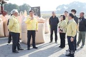 한국시사경제 전북취재본부 | 정읍시가 올해 1만 3000여 톤의 공공비축미곡 매입을 추진 중인 가운데, 이학수 시장이 13일 건조벼 매입이 한창인 이평면 정부양곡창고를 찾았다. 이 시장은 어려운 여건 속에서도 고품질 쌀 생산에 힘쓴 농업인들과 지역농협, 농산물품질관리원 관계자들을 격려하며 현장의 애로사항을 청취했다. 올해 정읍시의 공공비축미곡 매입 물량은 총 1만 3046톤이다. 세부적으로는 건조벼 9839톤, 산물벼 1240톤, 가루쌀벼 1967톤이 배정됐다. 산물벼는 지난달 10일 영원 RPC(미곡종합처리장)를 시작으로 지난달 28일 매입이 완료됐으며, 현재는 가루쌀벼와 건조벼 매입이 진행 중이다. 매입 중인 건조벼 품종은 신동진, 새청무 2개 품종이다. 시는 기타 품종이 20% 이상 혼입될 경우 향후 5년간 공공비축미 매입 대상에서 제외되므로 농가의 각별한 주의가 요구된다. 매입가격은 조곡 40kg 기준으로, 매입 직후 4만원의 중간정산금을 지급한다. 최종 정산금은 벼 수확기(10~12월) 전국 평균 산지쌀값을 40kg 조곡으로 환산한 금액을