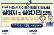 한국시사경제 충남취재본부 | 천안시가 퇴직 전문인력의 풍부한 경험을 지역사회 공헌 활동으로 연결하는 ‘2026 신중년 사회공헌활동 지원사업’을 추진한다. 천안시는 신중년 세대의 전문성을 비영리기관의 공익사업과 연계해 교육, 행정지원 등 사회서비스를 제공하는 지원사업을 본격 시행한다고 13일 밝혔다. 이번 사업은 퇴직 후에도 일하기를 희망하는 신중년에게 사회참여 기회를 제공하고, 인력난을 겪는 비영리기관에 전문 지식을 보급하기 위해 마련됐다. 참여 대상은 천안시에 거주하는 만 50세 이상 70세 미만의 미취업자로, 관련 분야에서 3년 이상의 경력을 보유했거나 공인 자격을 갖춰야 한다. 모집 인원은 총 40명이며, 선발된 인원은 경영전략, IT 정보화, 법률법무, 문화예술, 행정지원 등 13개 전문 분야에서 활동하게 된다. 참여자에게는 활동 시간에 따라 1일 4시간 이상 활동 시 최대 1만 1,500원의 실비(식비·교통비)가 지급되며, 이와 별도로 시간당 3,500원의 참여 수당이 지원된다. 활동 시간은 1인당 월 120시간, 연 480시간 이내로 제한된다. 참