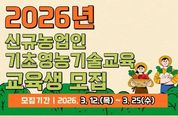 한국시사경제 충남취재본부 | 청양군이 최근 농어촌 기본소득 시행 등으로 급증한 신규 귀농인들의 안정적인 연착륙을 돕기 위해 영농 현장의 생생한 노하우를 전수하는 밀착형 지원에 나섰다. 군은 지난 12일, 신규 귀농인의 기술 습득과 영농 정착을 돕는 ‘2026년 선도농가 현장실습 교육’ 대상 8팀을 확정하고, 청양혁신플랫폼 와유에서 약정 체결 및 사전 교육을 실시하며 사업의 본격적인 시작을 알렸다. 이번 사업은 경험이 부족한 신규 귀농인(연수생)과 풍부한 영농 경험을 가진 베테랑 농업인(선도농가)을 1:1로 매칭해, 작물 재배 기술은 물론 농산물 가공·판매·마케팅 등 농업 경영 전반에 걸친 실전 지식을 전수하는 멘토링 프로그램이다. 특히 올해는 ‘청양군 농어촌 기본소득 시범 사업’ 시행 이후 귀농 희망자가 대폭 늘어남에 따라, 군은 관련 예산을 증액 편성하고 지원 규모를 지난해 5팀에서 8팀으로 확대해 귀농인들의 뜨거운 호응에 응답했다. 지난 12일 실시되는 교육에서는 본격적인 현장실습에 앞서 연수 과정에서의 유의 사항과 지원금 신청을 위한 시스템 활용법 등을 상세히 안내됐다. 또한 선도