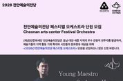 한국시사경제 충남취재본부 | 천안문화재단은 내달 3일까지 천안예술의전당 페스티벌 오케스트라 단원을 모집한다고 13일 밝혔다. 천안예술의전당은 지난 2023년부터 페스티벌 오케스트라를 추진해 지역 예술가를 발굴해 오고 있다. 올해 오케스트라 공연에는 한국 음악계를 이끄는 젊은 지휘자 홍석원과 소프라노 김순영, 트럼펫 성재창이 함께 한다. 오케스트라 단원 모집에는 충남과 대전, 세종 거주자 또는 천안시 소재 학교 졸업생 중 음악대학 학사 학위 이상을 취득한 누구나 지원할 수 있으며, 참여 희망자는 3분 이내의 연주 영상과 지원서를 전자우편으로 제출하면 된다. 최종 선발된 단원은 오는 6월 27일 천안예술의전당 대공연장 무대에 오르게 된다. 자세한 사항은 천안예술의전당 누리집에서 확인할 수 있다.