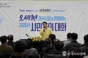 한국시사경제 충남취재본부 | 아산시는 지난 23일 인주면 행정복지센터에서 ‘2026 시민과의 대화’를 열고, 지역 여건과 주요 현안에 대한 주민 의견을 청취했다. 이날 열린 ‘인주면 시민과의 대화’는 아산시 17개 읍면동 순방 일정의 하나로, 오세현 아산시장을 비롯해 안장헌 충남도의원, 김희영·홍순철·김은복 시의원, 인주면 기관·단체장과 주민 등 200여 명이 참석한 가운데 진행됐다. 오세현 시장은 간담회에 앞서 인주면의 위상과 향후 역할을 언급하며 “인주면은 서해안 시대의 핵심 성장 거점으로, 서해안내륙고속도로와 인주역 등을 발판으로 더 큰 도약의 기회를 맞고 있다”고 말했다. 그는 “동부권의 성장 동력이 ‘인구 40만 도시 아산’의 기반이었다면, 인구 50만 자족도시를 향한 다음 도약의 출발점은 인주가 될 것”이라며 “현재 추진 중인 인주3공구 산업단지 등 주요 사업들이 지역 발전으로 자연스럽게 연결될 수 있도록 행정적 지원을 이어가겠다”고 밝혔다. 이어 “큰 개발 계획도 중요하지만, 주민 생활과 직결된 문제를 현장에서 직접 듣고 하나씩 해결하는 것 역시 기초지방정부의 중요한 역할”이라며 “오늘