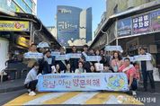 한국시사경제 충남취재본부 | 아산시는 23일 서귀포 매일올레전통시장에서 ‘2025~2026 충남·아산 방문의 해’ 홍보 캠페인을 진행했다고 밝혔다. 이번 캠페인은 서귀포에서 열린 연찬회에 참석한 농정과 직원 24명이 참여했으며, ‘환영해U’ 어깨띠를 착용하고 전통시장을 찾은 방문객과 상인들을 대상으로 아산의 매력을 적극 홍보했다. 특히, 2025~2026 한국관광 100선에 선정된 현충사, ‘국민이 뽑은 2025 농촌여행지 스타마을 20선’에 선정된 아산 외암민속마을 등 아산의 대표 관광지와 주요 축제, 다양한 관광자원을 집중적으로 홍보했다. 시 관계자는 “이번 캠페인을 통해 아산의 매력을 널리 알리고, 지역민과 방문객 모두에게 즐겁고 뜻깊은 추억이 되길 바란다”고 말했다.