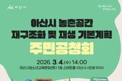 한국시사경제 충남취재본부 | 아산시는 '농촌공간 재구조화 및 재생 기본계획' 수립과 관련해 지역 주민과 관계 전문가의 의견을 수렴하기 위한 주민공청회를 오는 3월 4일 오후 2시, 아산시 청소년교육문화센터 1층 스마트홀(시민로 500)에서 개최한다. 이번 기본계획은 아산시 2개 읍·9개 면을 공간적 범위로 하고, 2026년부터 2035년까지 10년간을 계획기간으로 수립되는 법정계획이다. 농촌공간의 체계적 기능 재편과 생활여건 개선을 목표로, 지역 특성을 반영한 중장기 발전 방향을 제시할 예정이다. 공청회에서는 △계획 개요 △현황 및 여건 분석 △재구조화 및 재생 기본구상 △부문별 계획 등을 발표하고, 토론과 질의응답을 통해 주민 및 전문가 의견을 폭넓게 수렴할 계획이다. 시는 공청회에서 제시된 의견을 종합해 아산시 농촌공간정책심의회 심의와 농림축산식품부 및 충청남도와 협의 과정에 반영할 방침이다. 기본계획(안)에 의견이 있는 주민은 3월 13일 오후 6시까지 전자우편 또는 우편으로 의견서를 제출하거나, 공청회에 참석해 질의응답 시간에 직접 의견을 제시할 수 있다.