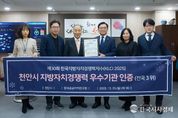 한국시사경제 충남취재본부 | 천안시는 올해 한국지방자치경쟁력지수(KLCI) 조사에서 2년 연속 3위를 차지하며 (사)한국공공자치연구원으로부터 인증서를 받았다고 29일 밝혔다. 한국지방자치경쟁력지수(KLCI)는 1996년부터 시작해 올해로 30회째를 맞은 조사로, 정부기관 통계연보를 바탕으로 지자체 경쟁력을 평가한다. 김충환 (사)한국공공자치연구원 이사장은 “천안시가 최근 몇 년간의 도약 이후에도 상위권 흐름을 이어가며 도시 경쟁력의 연속성을 보여주고 있다”고 밝혔다. 김석필 천안시장 권한대행 부시장은 “이번 결과를 토대로 강점은 더욱 발전시키고, 도시 성장 과정에서 나타나는 과제는 체계적으로 보완해 시민이 체감할 수 있는 변화로 이어지도록 시정 운영에 최선을 다하겠다”고 말했다.