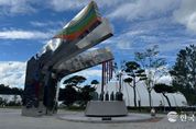 한국시사경제 충북취재본부 | 영동세계국악엑스포조직위는 영동세계국악엑스포 개막과 함께 행사장 내에 설치된 상징 조형물‘전통의 울림, 미래를 울리다’의 제막식을 26일 개최했다. 이날 제막식에는 국악 엑스포 공동위원장인 정영철 영동군수, 윤영달 크라운해태 회장을 비롯해 민의식 국악 엑스포 집행위원장, 신현광 영동군의회 의장 등 주요 내빈이 참석해 자리를 빛냈다. 국악엑스포 상징조형물은 복합문화예술회관 옆에 높이 6미터, 세로 8.7미터, 가로 6.7미터 규모로, 금속 조각가 심병건 작가가 제작했다. ‘ㄱ’자 기울기에서 가장 맑은 소리를 내는 115도로 깎는 편경을 모티브로 하여 제작된 기학학적 구조의 세 개의 기둥은 국악이 지닌 맑고 청아한 울림을 형상화한다. 또, 음의 파동과 리듬으로 시각화된 율관과 한국 고유의 정체성을 의미하는 오방색 띠로 열린 세계를 향해 뻗어 나가는 에너지를 나타낸다. 세 개의 기둥과 함께, 중앙의 상단에 편종과 편경을 의미하는 파이프를 조형하여 ‘울림과 진동’이 이곳에서 시작되어 세상에 울려 퍼져나감을 표현했다. 16개의 편종은 관람객들이 각각을 두드