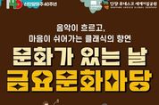 한국시사경제 충북취재본부 | 충북 단양군은 오는 9월 26일부터 12월까지 매월 마지막 금요일 저녁, 올누림센터 4층 강당에서 ‘2025 문화가 있는 주간 금요문화마당’을 운영한다고 밝혔다. 이번 프로그램은 문화기반시설을 활용한 정기 공연 활성화를 위해 마련된 것으로, 주민과 관광객이 함께 즐길 수 있는 소규모 공연을 통해 지역 문화 향유 기회를 넓히고자 기획됐다. 공연은 매월 다른 장르로 꾸며진다. 9월 26일 톱연주 공연을 시작으로 10월 31일 하모니카 연주, 11월 28일 클래식 공연, 12월 26일 영화 상영이 이어진다. 회차마다 약 100여 명 내외가 관람할 수 있으며, 관람은 선착순으로 입장 가능하다. 군 관계자는 “문화가 있는 주간 금요문화마당은 일상 속에서 문화를 접할 수 있는 소중한 기회가 될 것”이라며 “앞으로도 다양한 문화 프로그램을 통해 군민과 관광객이 함께 즐길 수 있는 문화공간을 확대해 나가겠다”고 말했다.