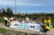 한국시사경제 충북취재본부 | (재)제천복지재단(이사장 신길순) 소속 ESG 동아리 ‘에코조코(ECO+좋고, 조화로운 코뮤니티)’가 제천시 '하천살리기운동'에 3호 참여 단체로 지정되어 지난 23일, 강제천 명지교 일대에서 하천 정화 활동을 실시했다. '하천살리기운동'은 충청북도가 2032년까지 도내 하천 수질 Ⅰ등급 달성을 목표로 범도민 참여형 정화 활동을 전개함에 따라, 제천시에서도 자율적인 하천 환경 개선 활동을 장려하기 위해 시행하고 있는 사업이다. 이날 ‘에코조코’ 회원들은 강제천의 명지교 일대에서 하천 주변에 버려진 생활 쓰레기와 폐기물들을 수거했다. 또한 ‘에코조코’의 회원이 소속된 기관인 강저 롯데캐슬 어린이집과 코아루 어린이집 원생들이 함께 EM흙공을 던지며 미생물을 활용한 친환경 정화 활동도 진행했다. 어린이들은 직접 참여를 통해 환경 보전의 중요성과 책임감을 체감하는 소중한 경험을 얻었다. 신길순 이사장은 “이번 하천살리기운동은 지역 환경을 보호하고 사회적 가치를 실현하기 위한 제천복지재단의 약속”이라며, “앞으로도 제천복지재단은 ESG 동아리 ‘에코조코’를 중심으로 하천살리기운동에 적극 참