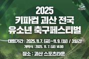 한국시사경제 충북취재본부 | 충북 괴산군은 오는 11월 7일부터 9일까지 3일간 괴산스포츠타운과 청소년수련원 축구장에서 ‘2025 자연울림괴산 전국 유소년축구대회’를 개최한다고 30일 밝혔다. 이번 대회는 (사)한국유소년축구협회와 괴산군체육회가 공동 주최하고, (사)한국유소년축구협회 및 괴산군축구협회가 주관한다. 전국 각지에서 총 70개 팀, 선수 및 임원, 학부모 등 2,000여 명이 참가할 예정이다. 특히 7일 오후 2시에는 괴산스포츠타운 준공식과 함께 개막식이 열리며, 개막 이후 첫 경기로는 괴산군 대표팀인 강호FC가 출전해 대회의 시작을 알린다. 경기는 학년별로 나뉘어 진행된다. 초등 1~3학년부는 6인제, 4~6학년부는 8인제 방식으로 운영되며, 경기의 공정성과 안전성을 확보하기 위해 전문 심판진과 운영 요원이 배치된다. 대회 우승팀에게는 필리핀 뉴클락시티에서 열리는 국제대회 및 동계 해외전지훈련 무상 참가 자격이 주어지며, 이를 통해 선수들이 국제무대 경험을 쌓고 기량을 향상시킬 수 있을 것으로 기대된다. 또한, 이번 대회는 단순한 스포츠 행사를 넘어 지역경제 활