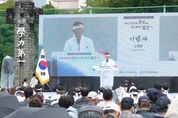한국시사경제 한장선 객원기자 | 제주특별자치도는 28일 오전 10시 서귀포시 중문중학교 운동장에서 무오법정사 항일항쟁 107주기 기념식을 거행했다. ‘1918 무오년의 함성에서, 제주항일의 불꽃으로’를 주제로 열린 올해 기념식에는 독립유공자 유족과 광복회원, 청소년, 불교계, 도내 주요 기관·단체 관계자 등 500여 명이 참석했다. 특히 광복회 이주중 부회장이 직접 참석해 광복회 중앙 차원에서 함께 의미를 나누며, 세대를 아우르는 추모와 계승의 장을 마련했다. 원용길 중문청년회의소 회장의 개식선언과 국민의례로 기념식이 시작됐다. 올해 가장 달라진 점은 헌화․분향 순서였다. 지난해 행사장 한켠에 별도 추모공간을 뒀던 것과 달리, 올해는 행사 식순에 추모 순서를 포함해 발광다이오드(LED 화면과 제단을 결합했다. 무대 전면 대형 스크린에는 항일영웅 66명의 이름과 인공지능(AI) 복원 초상화가 차례로 비춰졌고, 대표자들이 헌화․분향과 목례로 선열들의 뜻을 기렸다. 중문청년회의소 특우회장과 남녀 학생 대표는 무대에 올라 결의문을 공동으로 낭독하며 미래세대가 선열들의 고귀한 정신을 이어가겠다는