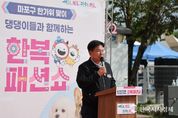 한국시사경제 한장선 객원기자 | 박강수 마포구청장은 9월 28일 오후 14시, 마포반려동물캠핑장에서 열린 한가위 맞이 ‘댕댕이 한복 패션쇼’에 참석해 참가자들과 즐거운 시간을 보냈다. 이날 행사에는 반려견 및 반려가족 30여 팀이 참가했으며, 한가위를 맞아 한복을 곱게 차려입은 댕댕이들이 각자 저마다의 모습을 뽐내는 자리였다. 참석한 반려가족들은 다양한 포토존에서 소중한 반려견의 모습을 오래 간직할 수 있었다. 이날 패션쇼는 서울시수의사회 소속 수의사의 심사로 입상견 3팀에 시상을 했으며, 반려견을 위한 건강관리 상담도 진행했다. 또한 보호자 윷놀이 대회와 퓨전 국악 버스킹 등 다양한 행사가 펼쳐져 참가자들 또한 사랑하는 반려견과 즐거운 시간을 보낼 수 있었다. 박강수 마포구청장은 “소중한 댕댕이들과 함께 특별하고 즐거운 추억 많이 만들어가시길 바란다”면서 “아이부터 어른, 그리고 소중한 가족인 반려동물까지 모두가 행복한 펫세권으로 자리할 수 있도록 노력하겠다”고 전했다.