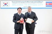 한국시사경제 해외팀 | 안양시는 최대호 시장이 지난 17일 오전 11시40분 안양시청 3층 접견실에서 호르헤 엔리케 발레리오 에르난데스 주한코스타리카 대사와 코스타리카 커피 산업을 총괄하는 공식 연구·관리 기관인 코스타리카 커피연구소(ICAFE) 대표단을 접견하고, 양국 지방정부 간 실질적 교류 확대 방안을 논의했다고 18일 밝혔다. 이번 접견은 지난 7월 말 최대호 안양시장이 전국사회연대경제지방정부협의회 소속 지자체장들과 함께 코스타리카를 방문해 스테판 브루너 제1부통령, 호르헤 발레리오 주한코스타리카 대사 등 정부 관계자와 만나 지속가능한 지역발전과 상생 경제 실현을 위한 정책을 논의한 데 따른 후속 교류 일정이다. 이날 최대호 시장은 환영 인사에서 “한국과 코스타리카의 수교 63주년이자 코스타리카 독립 204주년을 맞는 뜻깊은 해에 이렇게 다시 만나게 되어 더욱 의미가 깊다”며 “지리적으로 멀리 떨어져 있지만 상호 존중과 신뢰를 바탕으로 동반자적 협력을 이어가자”고 강조했다. 이에 주한코스타리카 대사는 안양시의 따뜻한 환대에 감사를 표하며 “코스타리카와 한국 양국 관계가 더욱 공고해지는 만큼, 안양시와도