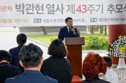 한국시사경제 김숙영 기자 | 김제시는 학수재 영락회(회장 김복남)가 15일 금산면 학수재 위령각에서 회원, 시 기관·단체장, 지역주민 등 100여 명이 참석한 가운데 호국영령 추모제를 개최했다고 밝혔다. 이번 추모제는 동학농민혁명 당시 대접주로 활약한 김덕명 장군, 원평장터에서 기미독립만세운동을 주도해 옥고를 치른 9명의 애국지사, 그리고 광복군 제1지대장으로 활약한 이종희 장군 등 금산면 출신 애국지사들의 숭고한 뜻을 기리기 위해 마련됐다. 학수재 영락회는 현충시설로 지정된 위령각과 이종희 장군 추모비를 정성껏 관리해 오고 있으며, 매년 ‘10월 15일’ 위령제를 올리며 애국선열들의 희생정신을 기리고 있다. 정성주 김제시장은 “국가를 위해 목숨을 바치신 호국영령들에 깊은 경의를 표하며, 긴 세월 아픔을 간직해 오신 유가족분들에게도 진심 어린 위로의 말씀을 전한다”며, “나라를 위해 헌신하신 선열들의 숭고한 희생정신을 잊지 않고, 보훈 가족에 대한 예우에도 최선을 다하겠다”고 밝혔다.