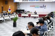 한국시사경제 충북취재본부 | 제천시는 지난 13일 시청 청풍호실에서 김창규 시장 주재로 국장 및 직속기관장, 부서장이 참석한 가운데 2026년 주요업무계획 보고회를 개최했다. 이번 보고회는 민선8기 후반기 시점에 시가 역점적으로 추진해왔던 사업 성과를 돌아보고, 시정을 이끌어갈 부서별 주요업무계획 보고를 주요 내용으로 진행됐다, 내년도 시정방향은 단기적으로 지금까지 구축해 온 성장 발판을 통해 시정 분야별 연계효과를 더욱더 확산시키고, 공약사업 및 핵심사업의 차질 없는 마무리, 시민이 체감하는 변화 완성, 혁신적 정책 발굴 등에 집중해 나가고, 장기적으로 그동안 시가 추진해 온 투자유치, 권역별 관광개발을 두축으로 투자유치 4조원 달성, 1,500만 문화․관광시대를 목표로 두 배 잘사는 경제 도시 제천 실현 기반을 착실히 완수해 나간다는 것이다. 김창규 제천시장은 “민선8기 4년차로 역동적이고 새로운 경제도시 제천을 만들기 위해 쉼 없이 달려왔다면서, 시간이 지나면서 시정이 결실을 맺고 눈에 뛰는 변화를 이뤄낸 것은 시민분들과 전 공직자가 한마음으로 노력한 결과”라며“2026년에도 제천의 미래 성장