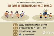 한국시사경제 이정이 기자 | 양구군 청소년수련관은 오는 20일 토요일 오후 2시, 청소년수련관 별관에서 ‘제3회 통기타&청소년밴드 연주회’를 개최한다. 이번 연주회는 청소년수련관에서 운영 중인 통기타 및 청소년 밴드 수업에 참여한 관내 청소년 20명이 그동안 갈고닦은 실력을 선보이는 자리로, 청소년들의 문화·예술 활동 성과를 공유하고 무대 경험을 제공하기 위해 마련됐다. 연주회에서는 기타 초급반 합주를 시작으로 솔로 연주와 밴드 공연이 이어지며, 대중가요부터 재즈까지 다양한 장르의 음악을 청소년들만의 개성과 감성으로 표현할 예정이다. 무대에 오르는 청소년들은 직접 연습하고 준비한 곡을 연주하며 관객과 소통하는 뜻깊은 시간을 갖는다. 청소년수련관은 이번 연주회를 통해 청소년들이 무대 경험을 쌓고 음악 활동을 통해 성취감과 자신감을 느끼며 자기 효능감을 높일 수 있을 것으로 기대하고 있다. 또한 공연 준비 과정에서 또래 친구들과 협력하며 배려와 소통의 가치를 배우는 계기가 될 것으로 보고 있다. 박인숙 평생교육과장은 “이번 연주회는 청소년들이 스스로 준비하고 만들어가는 성장의 무대”라며 “앞으로도 청소