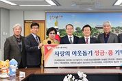 한국시사경제 윤광희 기자 | 진주시복지재단(이사장 이성갑)은 15일 진주시청 기업인의 방에서 지역사회 기업 ·기관·단체의 어려운 이웃돕기 성금품 기탁식을 가졌다. ㈜이번 기탁식에서 ㈜씨엔텍코리아 진주지점(대표 김영연, 제정열)에서 성금 2,000만 원을, 이수기술단㈜(대표 황국주)에서 성금 2,000만 원, NH 농협 도농상생본부와 진주시지부(지부장 이태용)에서 백미 10kg 375포(환가액 1,200만 원 상당)를, 신평새마을금고(이사장 하성식)에서 성금 500만 원, 진주시기독교총연합회(회장 박형호)에서 성금 500만 원, 대한전문건설협회 경상남도회 진주시운영위원회(위원장 박동식)에서 성금 500만 원, (사)한국부인회 경남지부 진주지회(회장 신부연)에서 성금 200만 원을 지역사회 저소득층 및 장애인 복지 지원을 위해 기탁했다. 이날 기탁식에 참석한 기업 ·기관·단체 관계자는 “지역사회 소외된 이웃에게 조금이나마 도움이 되길 바라며, 앞으로도 지역사회를 위한 나눔 활동에 적극 동참하겠다”고 밝혔다. 조규일 진주시장은 “어려운 시기에 따뜻한 나눔을 실천해 주셔서 감사드린다” 며 “기탁해 주신 성금은 소외된
