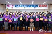 한국시사경제 충북취재본부 | 제천시지속가능발전협의회(상임회장 이영표)는 지난 19일 제천여성문화센터 1층 대강당에서 위원과 관계자 등 130여 명이 참석한 가운데 제27차 정기총회를 개최했다. 이날 총회에서는 지속가능발전 유공 우수위원 표창과 제천 기후변화교육 강사 위촉식, 제천 지속희망봉사단 창단, 지속가능발전목표(SDGs) 17개 목표 실천 다짐 행사 등이 진행돼 향후 지속가능발전 목표 달성 의지를 다졌다. 특히 새롭게 출범한 ‘제천 지속희망봉사단’은 지역사회 내 지속가능발전 실천 확산의 중심 역할을 수행할 것으로 기대되며, 기후변화교육 강사 위촉을 통해 시민 대상 환경교육 기반도 한층 강화될 전망이다. 협의회는 지난 한 해 동안 기후위기 대응과 시민 참여 확대, 지역 맞춤형 지속가능발전 사업 추진 등 다양한 분야에서 성과를 거두었으며, 올해는 더욱 체계적인 사업 추진과 민관 협력 강화를 통해 지속가능한 지역사회 조성에 속도를 낼 계획이다. 이영표 상임회장은 “이번 정기총회는 성과를 공유하는 동시에 새로운 도약을 준비하는 자리였다”며 “앞으로도 시민과 함께 지속가능한 제천을 만들어가기 위해 다양