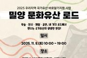 한국시사경제 노승선 기자 | 밀양문화관광재단은 오는 11월 8일 오전 10시부터 오후 7시까지 예림서원과 선비문화체험관 일원에서 지역 무형유산의 가치를 시민과 함께 나누는 ‘밀양 문화유산 로드’를 개최한다고 13일 밝혔다. 이번 행사는 지난해 9월 경상남도 무형유산 공동체 종목으로 지정된 밀양아리랑을 중심으로 전통문화의 가치와 의미를 재조명하고, 시민과 관광객이 함께 어울려 즐길 수 있는 다채로운 프로그램으로 구성됐다. 프로그램은 개회식과 기조강연을 시작으로 학술 프로그램, 전통 공연, 전시·체험 등으로 이어진다. 특히 밀양아리랑 고음반과 축음기 전시, 전통놀이·공예 체험 등 참여형 콘텐츠를 통해 남녀노소 누구나 전통문화를 직접 체험하고 즐길 수 있도록 꾸며진다. 재단은 이번 행사를 통해 국가유산의 역사적 가치와 현대적 활용 가능성을 재조명하고, 공동체 중심의 전승 모델을 제시한다는 계획이다. 이치우 재단 대표이사는 “이번 행사는 지역 전통유산의 가치를 새롭게 발견하고 시민과 함께 공유하는 뜻깊은 시간이 될 것”이라며 “앞으로도 지역 무형유산이 일상에서 지속되고 다음 세대에 전해질 수