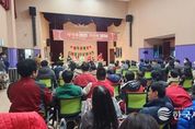 한국시사경제 문화팀 | (재)김해시복지재단 김해시서부장애인종합복지관은 12월 16일 복지관 이용자와 지역주민 등 약 300명이 참여한 가운데 2025년 송년행사 '기억해~ 2025, 기대해~ 2026'을 성황리에 개최했다. 이번 행사는 한 해 동안 복지관에서 함께해 온 다양한 활동과 성과를 되돌아보고, 이용자와 직원, 지역사회가 서로에게 감사와 응원의 마음을 전하며 따뜻하게 한 해를 마무리하고자 마련됐다. 행사는 참여마당, 공연마당, 나눔마당으로 구성되어 오전 10시부터 복지관 곳곳에서 다채롭게 펼쳐졌다. 참여마당에서는 노래자랑 ‘서부 노래방’을 비롯해 도자 모빌 만들기 체험, 타로상담, 둘레(헤어)살롱, 네컷사진 촬영 등 이용자가 직접 즐길 수 있는 다양한 프로그램이 운영됐다. 특히 선물 나눔 이벤트 ‘하늬선물마켓’에서는 푸짐한 선물 뽑기가 진행돼 행사 분위기를 한층 더 뜨겁게 달궜다. 공연마당에서는 경남무형유산 제37호인 김해오광대보존회의 특별공연 ‘찾아가는 오광대놀이’를 시작으로, 복지관 평생교육지원사업 수강생들의 난타·텅드럼 공연과 동아리 ‘휠하모니’의 음악 공연이 이어졌다. &