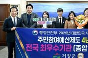 한국시사경제 경남취재본부 | 거창군은 지난 16일 정부세종청사에서 행정안전부가 주최하는 2025년 대한민국 지방재정대상 시상식에서 주민참여예산제도 운영 4년 연속 전국 최우수기관으로 선정되어 장관 기관표창과 함께 재정 인센티브 5천만 원을 받았다. 행정안전부는 매년 전국 지방자치단체 243개를 대상으로 주민참여예산제도 성과평가를 통해 지자체의 건전한 재정 운용과 지방재정 민주성책임성투명성 평가해 광역·시· 군·구 별로 각 1개씩 총 4개 기관만을 최우수기관으로 선정하고 있다. 거창군은 2018년, 2021년 우수기관에 선정된 데 이어, 2022년부터 2025년까지 4년 연속 최우수기관으로 선정되는 성과를 거뒀으며, 이는 전국 군 단위 82개 지자체 가운데 최상위 수준의 운영 역량을 입증한 것이다. 특히 올해는 ‘공감과 성장-진화하는 거창형 주민참여예산’이라는 슬로건 아래, △찾아가는 주민 예산학교 미래세대(초 · 중 · 고 · 대학생) 확대 운영으로 미래세대의 참여 환경 조성 △‘모방과 경연’을 주제로 거창군만의 차별화된 제안사업 공모유형을 다양화해 창의적 행정문화 확산 △회의 진행보조자(퍼실리테이터)를
