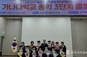 한국시사경제 사회팀 | 화성특례시는 17일 화성시평생학습관에서 ‘2025년 학력인정 성인문해교실 가나다학교 졸업식’을 개최했다. 학력인정 성인문해교실 가나다학교는 사회적·경제적 이유로 학령기 배움의 기회를 놓친 만 18세 이상 비문해·저학력자를 대상으로 문해 교육을 진행하는 프로그램이다. 시는 지난 2020년 12월에 교육부 학력 인정 문해교육 프로그램 운영 기관으로 지정된 이후 학력 인정 성인문해교육을 운영하고 있으며, 올해는 지난 3월 4일부터 12월 11일까지 연 450시간의 교육과정으로 진행됐다. 시는 지난 2022년 초등 3단계 졸업생 15명, 2024년 초등 3단계 졸업생 11명을 배출한 데 이어, 올해는 처음으로 중학 3단계 졸업생 11명을 배출했다. 또한, 중학 1단계는 8명이, 초등 1단계는 9명이 수료했다. 졸업식에서는 학습자 및 가족, 강사들이 참석한 가운데, 중학과정을 마친 졸업생들에 대한 졸업장과 상장 수여, 모범 졸업생 경기도교육감 표창장 수여 등이 진행돼 학습자들의 성과를 함께 축하하고 졸업의 기쁨을 나누는 시간을 가졌다. 학습자 대표는 “가나다학교가 없었다면
