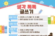 한국시사경제 노승선 기자 | 제주도교육청 서귀포도서관은 4월 5일부터 초등학교 4~6학년을 대상으로 ‘생각 톡톡 글쓰기’ 프로그램을 운영하며 참가자 15명을 선착순 모집한다. 이번 프로그램은 어린이들이 생각을 글로 표현하는 과정을 통해 창의적 사고력과 자기표현 능력을 키울 수 있도록 마련됐다. 운영 기간은 4월 5일부터 5월 3일까지이며 매주 일요일 오전 10시부터 12시까지 총 5회에 걸쳐 진행된다. 교육은 고지은 독서논술지도사가 맡아 ▲좋은 글 읽기 ▲글감 찾기 ▲글의 구조 이해 ▲초안 작성 ▲퇴고 과정 등 단계별 글쓰기 활동으로 구성되며 학생들이 자신만의 글을 완성할 수 있도록 지도할 예정이다. 특히 마지막 차시에는 어린이 작가와의 만남과 낭독회를 통해 학생들이 직접 쓴 글을 발표하는 기회를 제공한다. 참가 신청은 24일 오전 10시부터 제주특별자치도교육청 공공도서관 누리집을 통해 가능하며 선착순으로 마감된다. 서귀포도서관 관계자는 “이번 프로그램이 어린이들이 글쓰기에 대한 흥미를 높이고 자신의 생각을 자신감 있게 표현하는 계기가 되기를 기대한다”며 “앞으로도 다양한