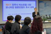 한국시사경제 윤광희 기자 | 진주시는 24일 시청 3층 문화강좌실에서 ‘2025년 미소친절 시민모니터단 교육’을 실시해 친절행정 실현에 앞장서고 있다. 이번 교육에는 미소친절 시민모니터단 25명이 참석해 모니터단의 역할과 평가체계를 이해하고, 읍면동 민원현장의 친절서비스 개선을 위한 암행 모니터링 방법 등 실무중심의 교육이 진행됐다. 또한 시민이 만족하는 친절행정 실현을 위한 의견 교환도 활발히 이뤄졌다. 미소친절 시민모니터단의 조사 결과는 올해 상·하반기 2회에 걸쳐 실시한 전화 친절도 평가 점수와 합산해 연말 읍면동 종합평가에 반영될 예정이다. 한편 진주시 미소친절 시민모니터단은 전 읍면동을 대상으로 ▲공무원의 친절도 ▲업무해결 노력도 ▲신속성 및 정확성 등을 시민의 눈높이에서 평가하고, 민원서비스 제도개선 의견을 제시하는 등 공무원 친절역량 강화를 위한 다양한 활동을 펼치고 있다. 장정오 민원여권과장은 “미소친절 시민모니터단은 시민의 눈높이에서 행정서비스를 살피는 소중한 파트너이다”면서 “앞으로도 시민이 체감할 수 있는 친절행정 구현을 위해 모니터단과의 소통을 강화하겠다”고 말했