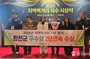 한국시사경제 노승선 기자 | 합천군은 농림축산식품부와 한국농수산식품유통공사(aT)가 주관한 2025년 지역먹거리 지수 평가에서 한국농수산식품유통공사 사장상(우수상)을 받으며, 2년 연속 우수 지자체로 선정됐다고 10일 밝혔다. 합천군은 경남도 내 군 단위에서 유일한 연속 수상에 성공하며, 합천군의 먹거리 정책 추진이 전국적으로도 높은 평가를 받고 있음을 다시 한번 입증했다. 합천군은 지역 생산·유통·소비의 연계를 강화하는 과정에서 학교급식에 지역 로컬푸드를 안정적으로 공급해 학생들에게 신선하고 안전한 식재료를 제공한 점이 우수한 성과로 인정받았다. 또한 지자체장의 정책 추진 의지, 다품목 생산체계 구축 지원, 농가 조직화 교육 등 핵심 지표에서 우수한 점수를 받아 올해 평가에서도 우수상을 이어갔다. 시상식은 12월 9일(화) 대전 인터시티호텔에서 전국 지자체 관계자 등 120여 명이 참석한 가운데 열렸다. 현장에서는 농림축산식품부 장관상과 aT 사장상이 순차적으로 수여됐으며, 지자체별 정책 성과를 담은 소감 영상이 상영되어 큰 호응을 얻었다. 군 관계자는 “이번 수상은 합천의 농업과 농촌이 한 단계