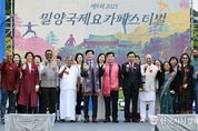 한국시사경제 경남취재본부 | 경남 밀양시와 월드요가테라피협회(WYTA)가 주최하고 비베카요가(대표 김은주)가 주관한 ‘제9회 2025 밀양국제페스티벌’이 지난 18일과 19일 양일간 선샤인 밀양 테마파크 일원에서 국내·외 요가 전문가, 시민, 관광객 등 1,000여 명이 참가한 가운데 성황리에 열렸다. 올해로 9회를 맞이한 이번 페스티벌은 ‘일상에 스며드는 요가, 명상 기반의 지속 가능한 웰니스’를 주제로, 국내·외 요가 전문가와 함께하는 전문 요가 세션, 웰니스 체험 공간 더웰그라운드, 요가와 힐링 음악이 결합된 요가문화콘서트 등 학술적 깊이와 생활 속 체험을 동시에 즐길 수 있는 다채로운 프로그램으로 구성됐다. 첫째 날에는 세계적인 요가 전문가이자 인도 모디 총리의 정신적 멘토로 알려진 구루지 나겐드라(Nagendra Ramarao Hongasandra) 비베카난다 요가대학교 총장과 만주나뜨 샤르마(Manjunatha Nandi krishnamurthy) 부총장을 포함한 국내·외 요가 전문가들이 수준 높은 강연을 통해 인도 정통요가의 품격을 보여주며 요가의 긍정적인 에너지를 전파했다. 이날 저녁 열린 요가