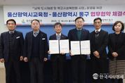 한국시사경제 울산취재본부 | 울산광역시교육청과 울산동구청은 남목 도시재생 사업에 따라 동구 남목초등학교에 조성되는 공영주차장·어울림센터를 학교와 지역이 함께 사용하는 복합 공동생활(커뮤니티) 센터로 확대 개편하기로 했다. 울산교육청과 동구청은 10일 이 같은 내용을 담은 ‘남목 도시재생 사업과 학교시설 복합화 조성을 위한 변경 협약’을 맺었다. 이번 변경 협약은 2023년 9월 합의된 150면 규모 공영주차장과 학교 밖 관사 부지 어울림센터 조성을 지역과 학교가 공동 활용하는 통합형 복합시설로 재구조화하는 내용이 핵심이다. 교육청, 지자체, 학교가 협력해 교육, 돌봄, 문화 기능을 한 공간에 구축하는 ‘학교시설복합화’ 추진 목적에 맞춰 사업이 전면 재설계됐다. 변경된 계획에 따르면 기존 지하 2층 중심의 공영주차장 계획은 지하 1층부터 지상 3층까지 총면적 5,148㎡ 규모의 복합시설로 개편되며, 2027년 12월 준공 예정이다. 조성되는 시설은 102면 규모의 공영주차장, 지역주민을 위한 1, 2층 복합 공동생활 센터, 남목초등학교 전용 3층 교육시설로 구성된다. 또한 학