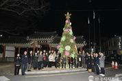 한국시사경제 오영주 기자 | 홍성군은 지난 9일 오후 6시 10분 홍성군청기독교신우회 주관으로 홍성군청 홍주아문앞에서 2025년 성탄 트리 점등식을 개최했다. 홍성군청선교회 주관으로 점등식과 함께 진행된 예배는 홍성군기관단체장 10여 명을 비롯해 홍성군기독교연합회와 홍성군기독교직장선교회, 지역주민 등 40여 명이 함께해 성탄의 뜻을 기리는 예배로 진행됐다. 홍성군청선교회 송재철 회장의 사회로 진행된 성탄트리 점등식 예배는 홍성군기독교연합회 이진곡 목사의 기도와 홍성군직장선교회 한규헌 장로의 성경봉독, 오종설 목사의 말씀선포, 홍성군수와 홍성군의회 의장의 축사, 김봉래 홍성군기독교연합회장의 축도로 마무리됐다. 한편, 홍성군은 주민의 안녕과 행복을 기원하고 군청을 오가는 이들이 크리스마스와 새해의 즐거움을 만끽할 수 있도록 대형트리를 설치했다. 이날 점등된 트리 앞에는 포토존도 마련되어 자유롭게 사진도 남길 수 있도록 했다.