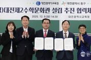 한국시사경제 대전취재본부 | 대전 동구는 9일 대전 수학문화관에서 대전시교육청과 ‘대전 제2 수학문화관 설립 업무협약’을 체결했다고 밝혔다. 이번 협약은 지난 8월 자양초 일원이 ‘대전 제2 수학문화관’ 설립부지로 선정됨에 따라, 향후 원활한 사업 추진을 위한 상호 협력 체계를 구축하기 위해 마련됐다. 이날 협약식에는 박희조 동구청장, 설동호 교육감을 비롯해 관계 공무원 등 7명이 참석했으며, 사업 전반에 대한 추진 방향을 공유하고 협력 사항을 논의했다. 협약에 따라 양 기관은 ▲수학체험 교육시설 구축을 위한 대·내외적 여건 조성 ▲사업 추진 일정·현황·자료 공유 등 상시 소통 등 제반 사항에 대해 적극 협력하기로 하고, 필요시 관계기관이 참여하는 추진협의체를 구성해 회의를 운영하는 등 지속적인 협의체계를 이어갈 계획이다. 박희조 동구청장은 “동부권 학생들이 일상에서 수학을 즐기고 상상력과 창의력을 키울 수 있는 기반이 마련돼 매우 뜻깊다”며 “수학문화관이 미래 교육을 선도하는 중심이자, 원도심 교육 발전의 새로운 전환점이 될 수 있도록 적극 지원하겠다”고 말했다. 한편, ‘대전 제2