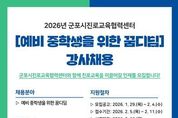한국시사경제 사회팀 | (재)군포시청소년재단 군포시진로교육협력센터는 관내 예비중학생의 학교 적응과 진로 기초 역량 강화를 위해 '2026년 군포시진로교육협력센터 예비중학생을 위한 꿈디딤' 프로그램에 참여할 강사를 채용한다고 밝혔다. 이번 강사 채용은 초등학교에서 중학교로의 학년 전환기를 앞둔 예비중학생을 대상으로, 중학교 생활 전반에 대한 이해를 높이고 진로 탐색과 자기 이해를 돕는 맞춤형 프로그램을 운영하기 위한 것으로, 총 3명 내외의 전문 강사를 선발할 예정이다. 채용 공고는 2026년 1월 29일부터 2월 4일까지 진행되며, 지원서 접수는 2월 5일부터 2월 11일까지이다. 접수는 이메일을 통해서만 가능하다. 선발된 강사는 예비중학생을 대상으로 중학교 생활 적응, 학습 및 진로 정보 제공, 학습 동기 강화 등을 주제로 한 ‘꿈디딤’ 프로그램을 운영하게 된다. 군포시진로교육협력센터 이혜진 센터장은 “예비중학생 시기는 중학교 생활에 대한 불안과 기대가 공존하는 시기”라며 “아이들이 새로운 환경에 안정적으로 적응하고, 스스로의 진로를 탐색할 수 있도록 돕는 프로그램이 될 수 있도록 전문 강사들의